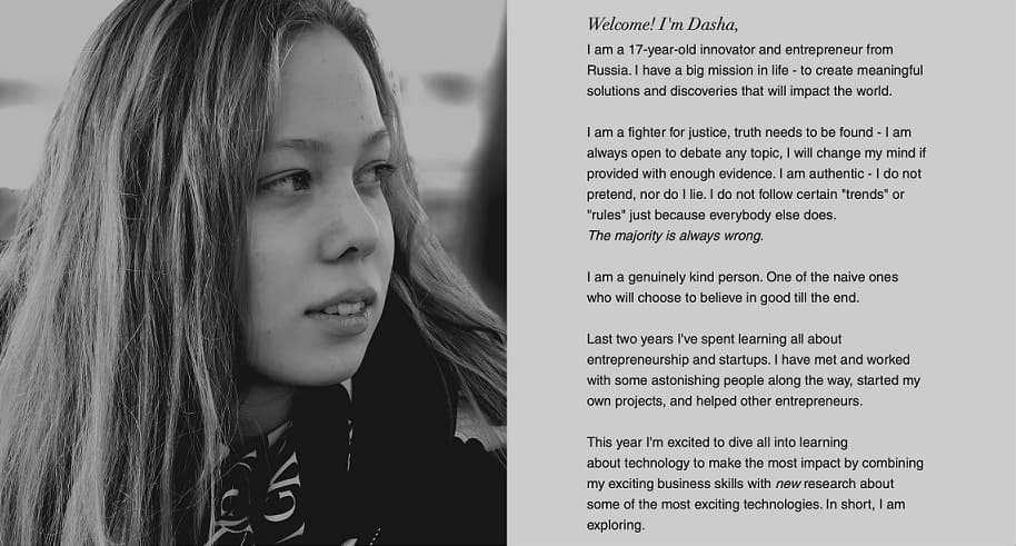 Зимой 2020 года я прошла стартап-школу Y Combinator, где разработала свой первый стартап и встретила много опытных основателей, которые были рады помочь 15-летней мне и стали менторами. А потом я помогала им с их стартапами и перенимала опыт. Летом 2020 года я участвовала в инкубаторе LaunchX для юных предпринимателей, где тоже развивала идею стартапа — мы должны были разработать концепт за шесть недель. Найти проблему, понять, кому нужно решение, разработать его после интервью с будущими пользователями, сделать стратегию на ближайшие пять лет. В июне 2021 года я закончила 10-месячный акселератор TKS — программу для амбициозных подростков. Их цель — создать новое поколение Илонов Масков, то есть увеличить количество умных людей, работающих над важными проблемами, помочь подросткам развиваться и решать глобальные задачи.