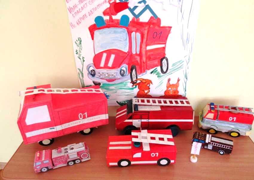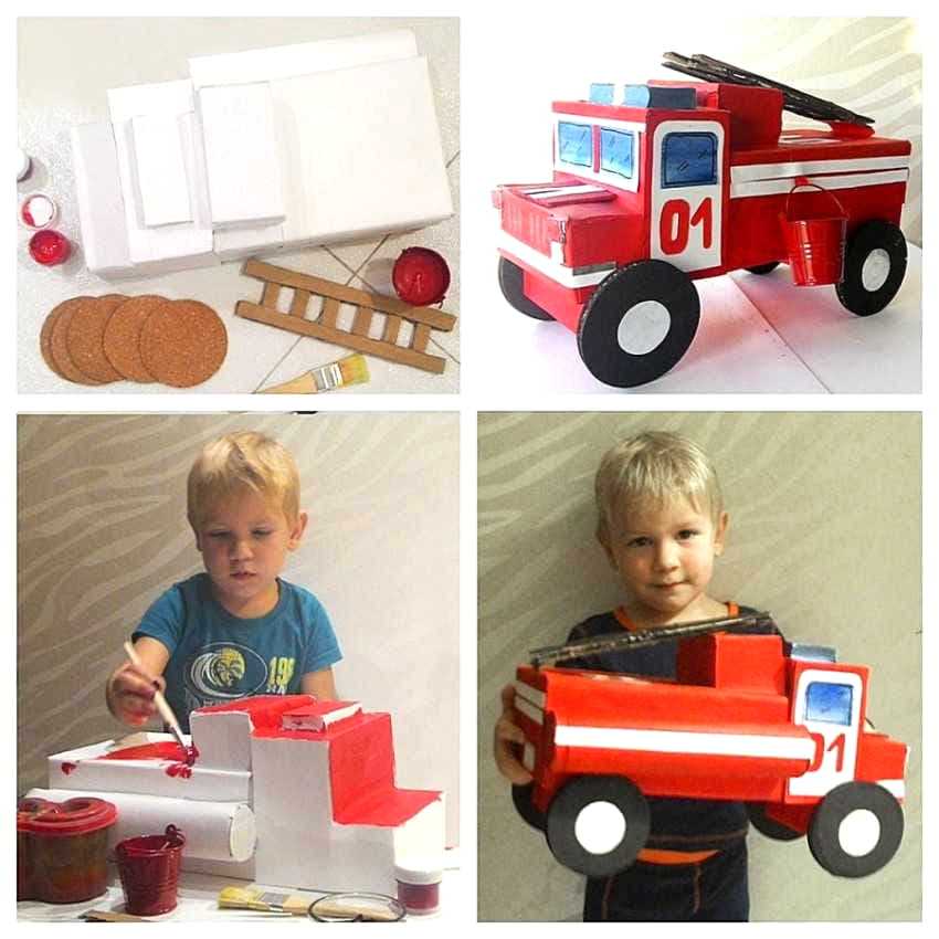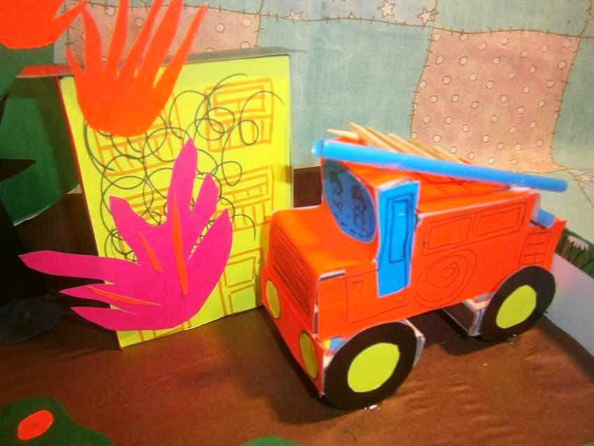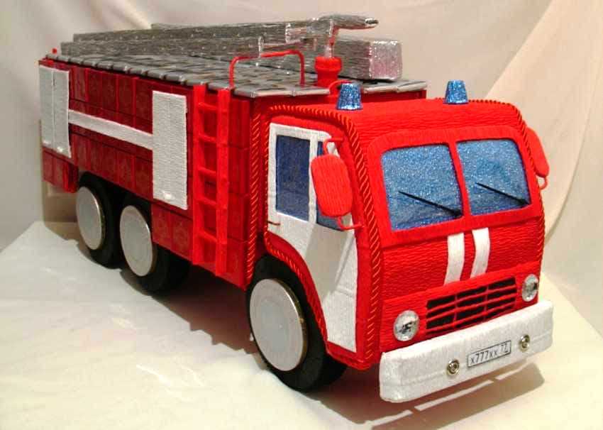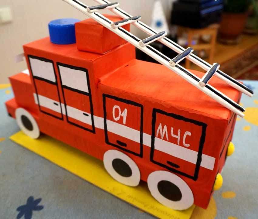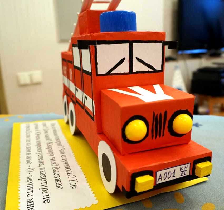Как видно на фото поделки машина пожарная, вам надо подготовить: