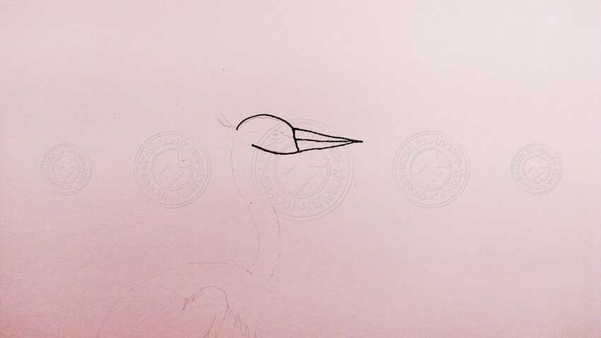 3. От головы вниз отведите 2 линии на небольшом расстоянии, показывая длинную изогнутую шею пернатого.