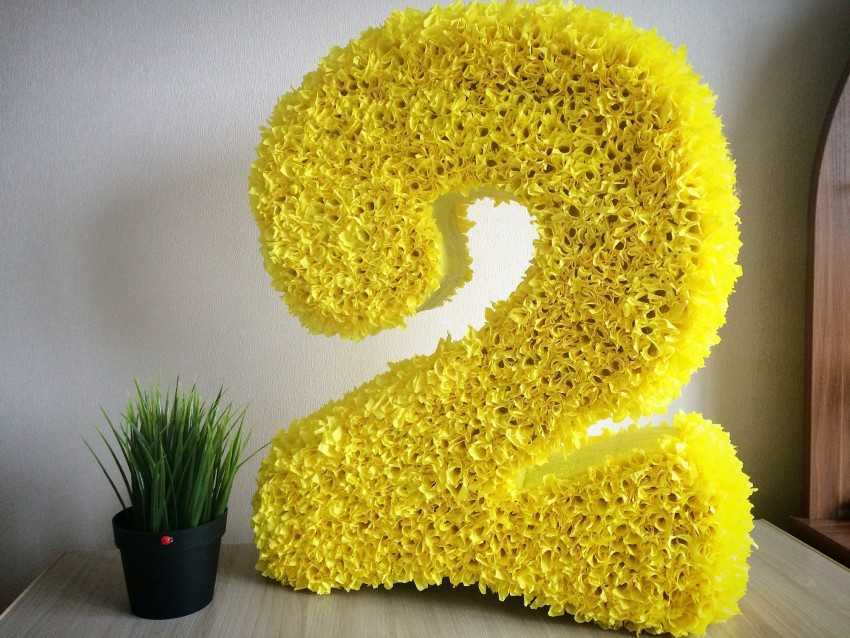 Очень необычно выглядят объемные буквы и цифры из салфеток, такие украшения очень часто делают на свадьбу или на День рождения ребенка. В уроке мы покажем, как сделать цифру 2 из салфеток, но по такому же принципу можно сделать любую букву.