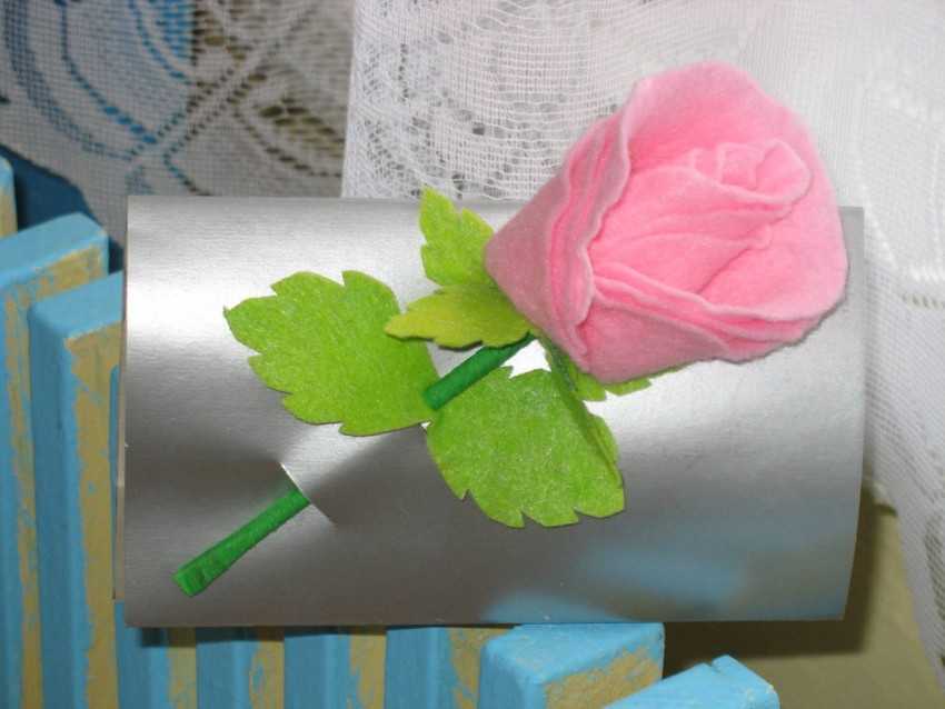 - Получившуюся розочку опускают в стакан с зелёной салфеткой.