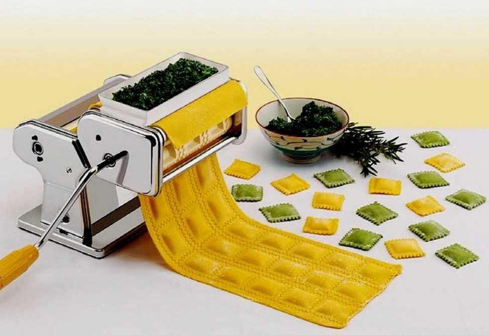 Это приспособление предназначено для приготовления не только пельменей, но и равиоли, а также пасты. Может применяться для нарезки домашней лапши и раскатки тонких пластов теста. Удобное в использовании приспособление, которое не отнимет много места на кухне. Отдельного внимания заслуживает возможность изготовления пластов для домашней лазаньи. Для изготовления корпуса применяется металлический сплав, который обладает стойкостью к коррозии.