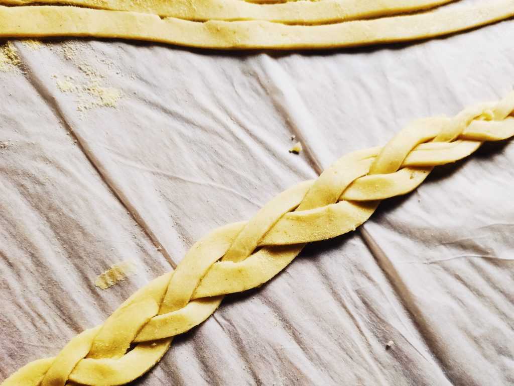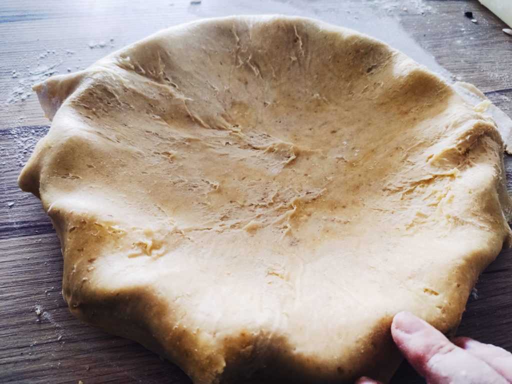 Выложить тесто на рабочую поверхность и домесить до гладкого плотного состояния. Сделать это нужно как можно быстрее и очень хоолооодными руками. Мелкие неровности при этом возможны, но тесто не должно крошиться.