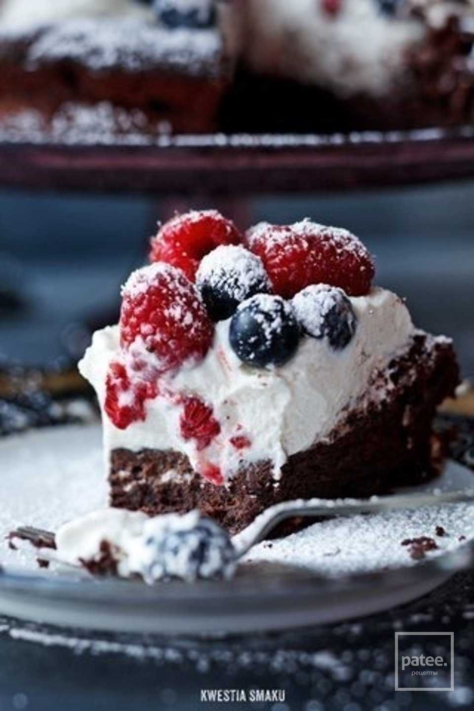 Вам потребуется:-125 г размягченного сливочного масла-125 г мелкого сахара-6 яиц комнатной температуры-300 г темного шоколада с содержанием какао не менее 70%-60 г качественного какао-порошка без сахара ( я беру исключительно марки X-tra)-2 ст л растительного масла-щепотка солиДля крема:-Свежие ягоды :малина, черника, ежевика, голубика-1 упаковка жирной сметаны Valio 45% либо 350 мл жирных сливок для взбивания 35%-100 г мелкого сахара-цедра и сок 1/2 лимонаДля начала разогрейте духовку до 175 гр.Смажьте сливочным маслом разъемную форму диаметром 22 см.Растопите на водяной бане шоколад. Для этого наполните кастрюлю водой на 1/3 и поставьте на сильный огонь. Когда вода закипит поставьте на кастрюлю большую металлическую миску, так чтобы ее дно нагревалось только горячим паром. Наломайте в миску шоколад и добавьте сливочное масло. Растопите шоколад постоянно помешивая массу резиновой лопаткой. Когда масса станет гладкой и однородной, снимите миску и поставьте на стол.В отдельную миску разбейте два яйца. Остальные 4 яйца бережно разделите на белки и желтки. Желтки добавьте к яйцам, а белки перелейте в объемную миску и взбейте с щепоткой соли в крепкую пену. Затем взбивайте белки добавляя порциями сахар. Взбивайте пока сахар полностью не растворится.Добавьте в желтки какао порошок и хорошо перемешайте. Введите яйца в шоколадную массу, активно перемешивая их венчиком, чтобы яйца не свернулись. Теперь в два приема введите белки в шоколадную массу, бережно перемешивая тесто венчиком круговыми движениями с низу в верх. Когда тесто станет однородным, перелейте его в подготовленную форму и разровняйте поверхность.Выпекайте пирог в течение 34-40 минут. Когда пирог будет готов извлеките его из духовки и дайте полностью остыть в форме. По идее середина пирога должна опасть при остывании — это нормально.
