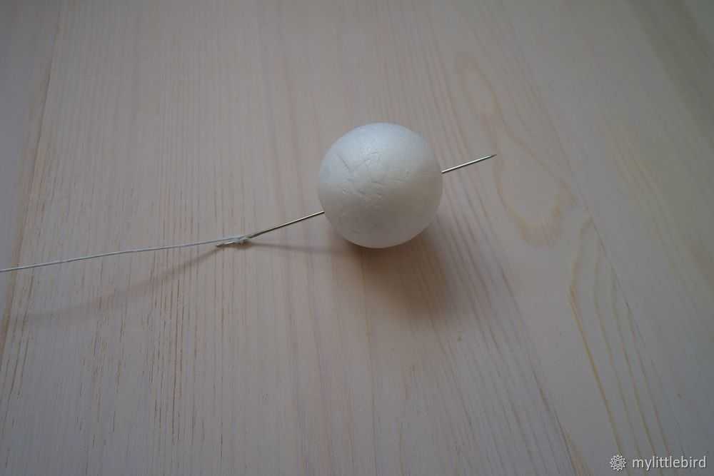 Теперь берем пенопластовую заготовку и вводим иголку насквозь:
