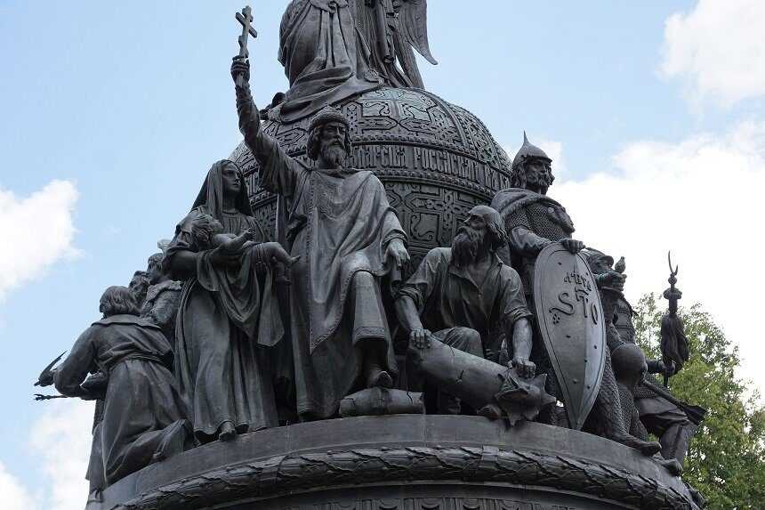 Тот самый автор летописи Иоаким Корсунянин стал первым епископом в Новгороде в 989 году, он лично участвовал в свержении идолов и заложил в центре города тринадцатиглавый деревянный собор. Чуть позже собор стал каменным, таким, каким мы видим его и сейчас. По византийской традиции храм был освящен в честь Софии — премудрости божией, воцарившейся после крещения Руси.