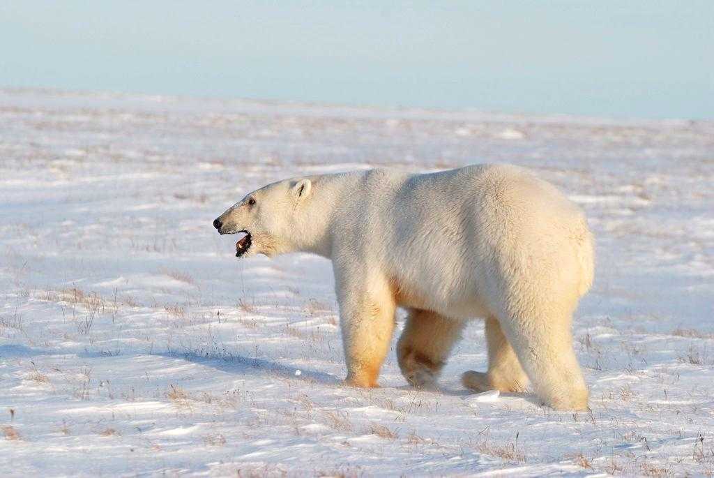 Крупный хищник, который обитает вблизи Берингова и Чукотского моря. Чукотский ареал белых медведей считается самым большим в мире. Среди белых медведей распространена высокая смертность молодняка. Погибает 10-30% медвежат, а размножаются медведи медленно. Это делает вид уязвимым. Масса тела самца может достигать 450 кг, а рождаются медвежата весом в 700 гр. Белый медведь считается символом Арктики.