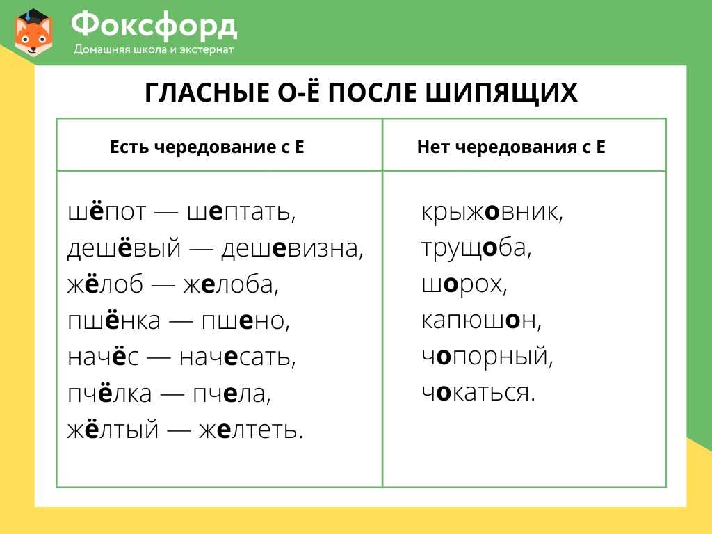 До сих пор мы говорили о безударных гласных. Казалось бы, какие сложности могут возникнуть при написании гласных, которые находятся под ударением? Однако и здесь существуют правила правописания гласных в корне слова, без знания которых можно допустить ошибку, например, правило правописания гласных О и Ё в корнях слов после шипящих.
