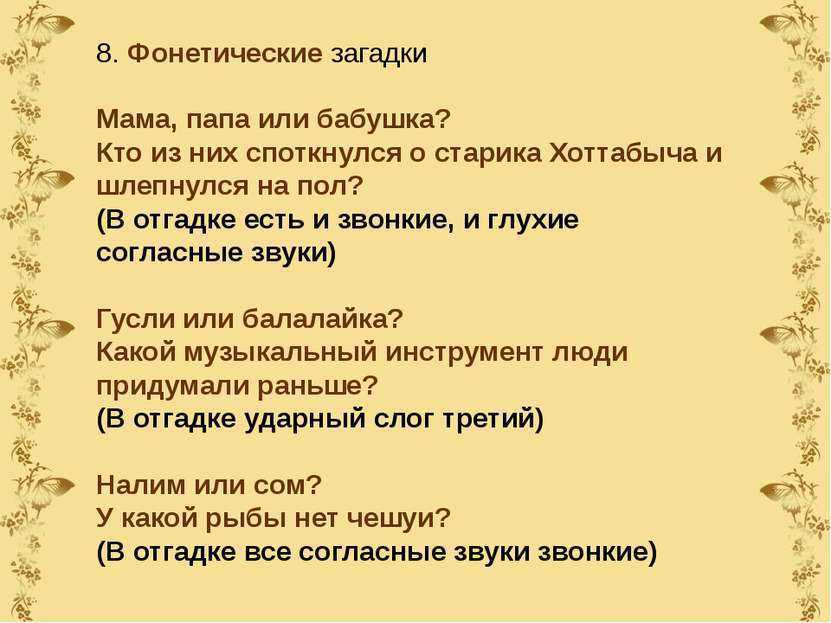 Загадки по русскому языку 6-7 класс про предлог, приставку, на тему парные согласные
