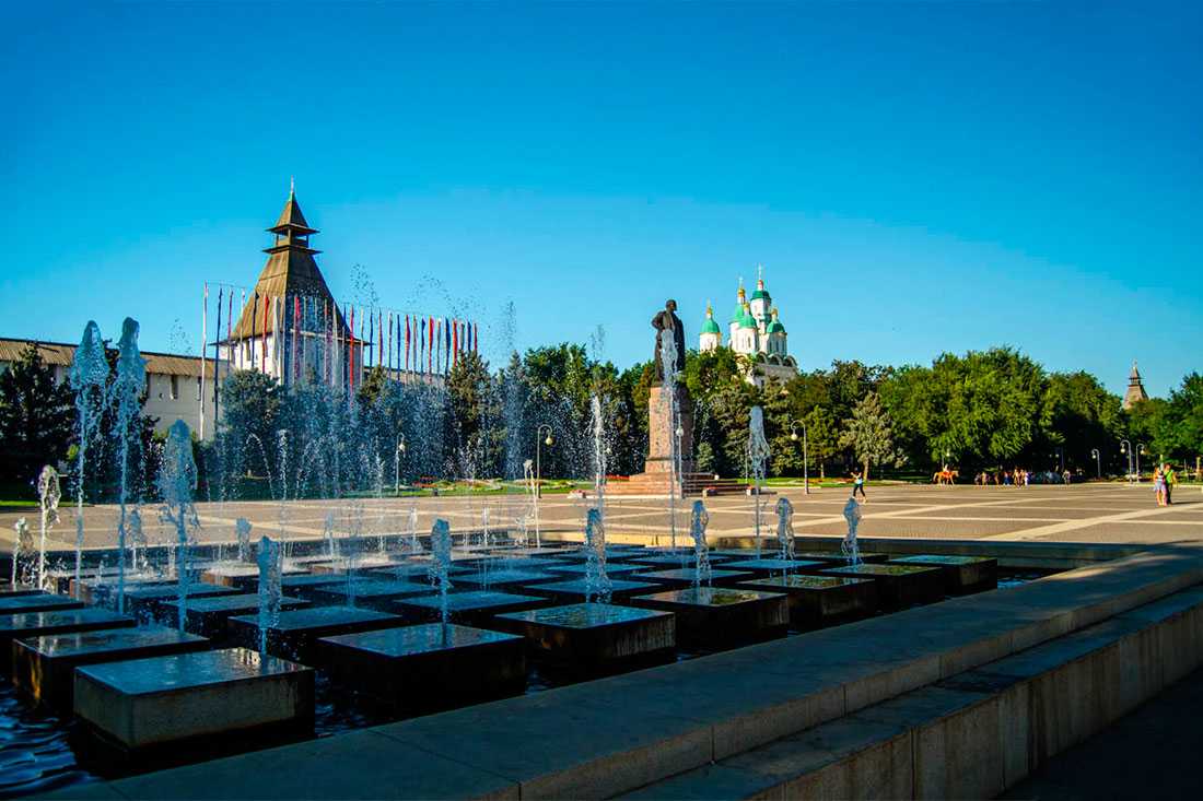 В 1950-х годах у стен кремля началась строительство нового городского квартала, а в 1958 году – к 400-летию города – в Астрахани появилась площадь Ленина. Примерно в то же время на площади установили памятник – 9-метровую скульптуру вождя на высоком постаменте. К 450-летию Астрахани площадь Ленина покрыли светлым гранитом и украсили малыми архитектурными формами.