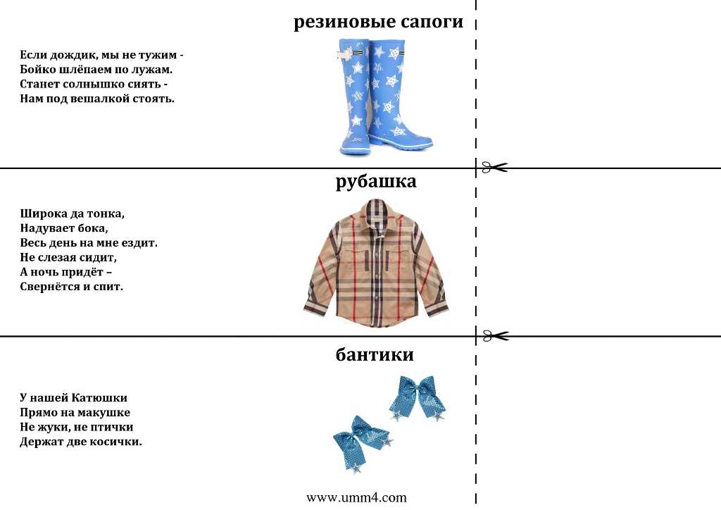 Загадки про одежду очень интересны. Они понравятся детям, помогут им запомнить как называются предметы гардероба, а так же к какому виду они относятся: головные уборы, верхняя одежда и т.д. Загадывать такие загадки можно в детском саду, дома или по дороге в машине. Совместите одевание с отгадывание загадок про одежду — вам и ребенку будет еще интересней.