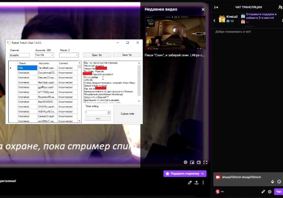 Для накрутки онлайна и активности в чате использовалась база аккаунтов. Эти боты смотрели только стримы тех, кто входит в Pardonte или Zavod.