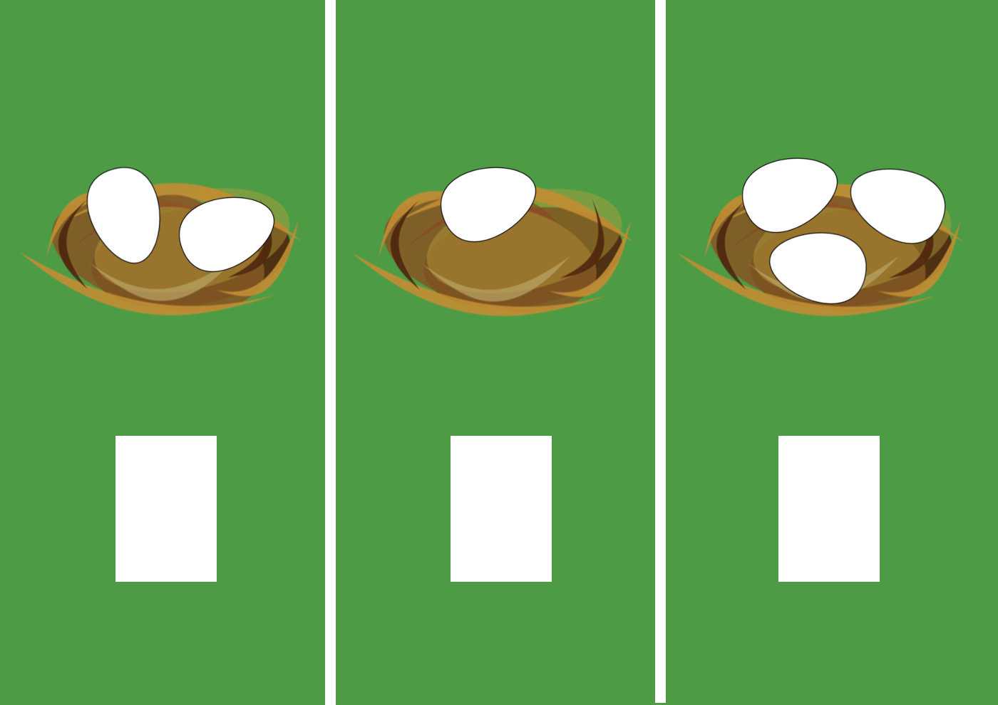 — Сосчитайте, сколько яиц в этом гнезде и обозначьте цифрой. А теперь сосчитайте яйца в другом гнезде и тоже обозначьте цифрой.