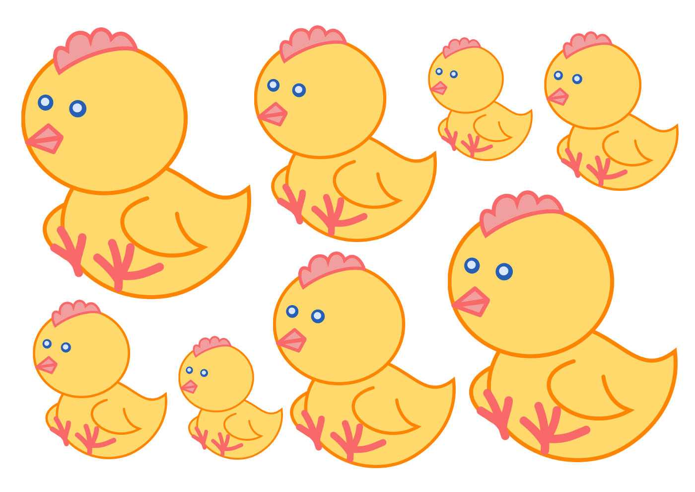 — Собралась курочка Ряба своих ребят-цыплят на прогулку вести. Давайте построим цыплят по росту: первым поставим самого большого цыпленка, за ним цыпленок поменьше. Затем еще поменьше и самый маленький.