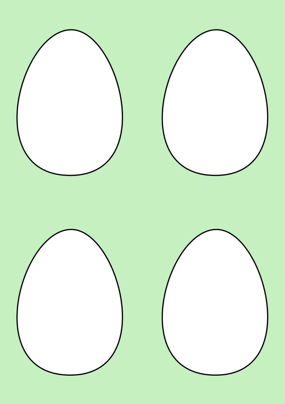 Картинки-заготовки с нарисованными в центре яйцами, карандаши черного цвета.