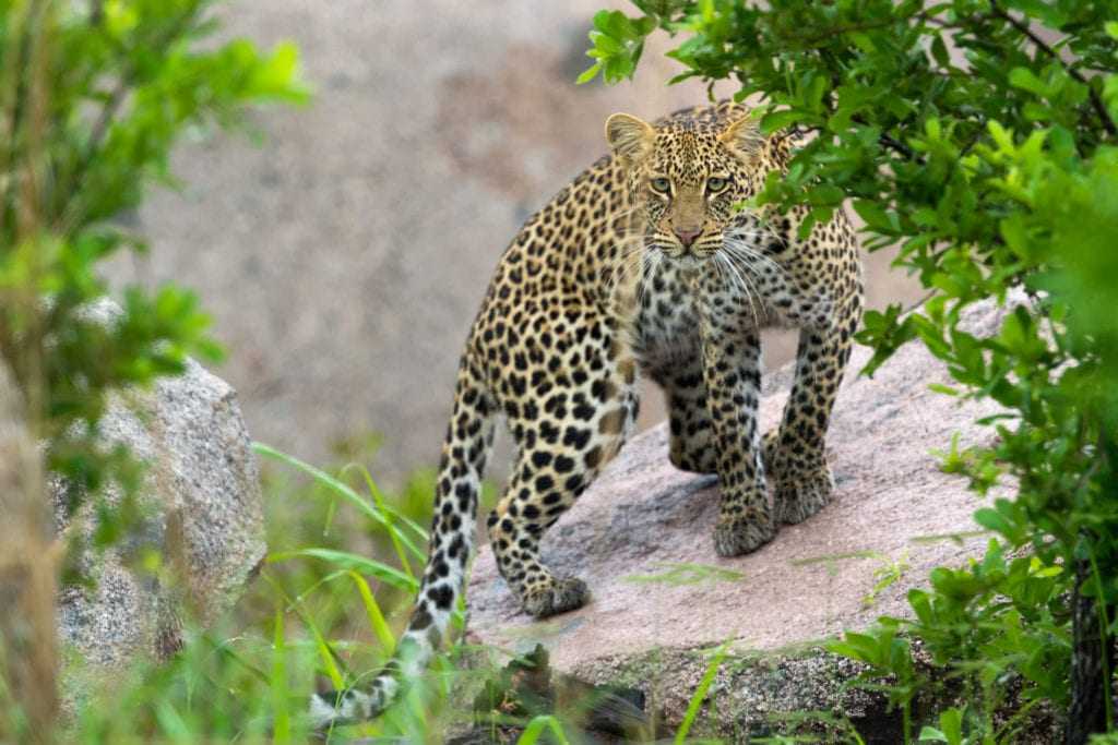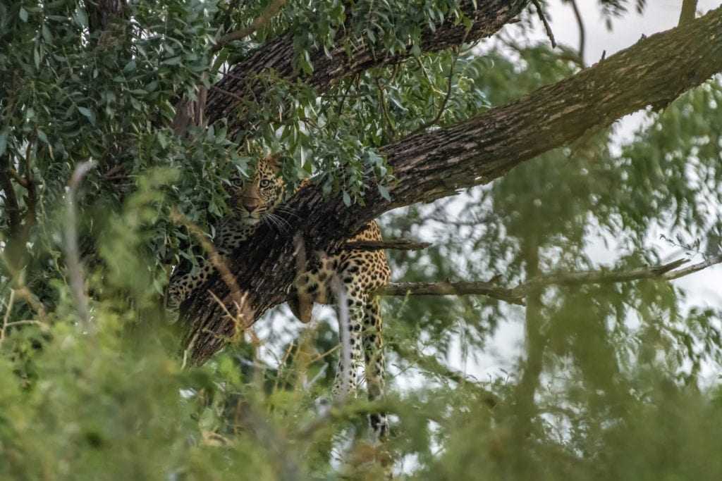 Леопард отлично лазает по деревьям, поэтому часто прячет добычу в ветках, и спит преимущественно на деревьях. Пятнистый окрас помогает им успешно прятаться в листве и в траве. Леопарды способны подкрасться к жертве на очень близкое расстояние даже в невысокой траве высотой до 30-40 см, это совершенный хищник, быстрый и бесшумный.