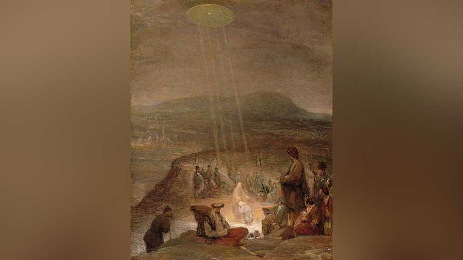 И вот еще одна картина с библейским сюжетом и НЛО. Написана она голландским художником Арентом де Гелдером и носит название «Крещение Христа».