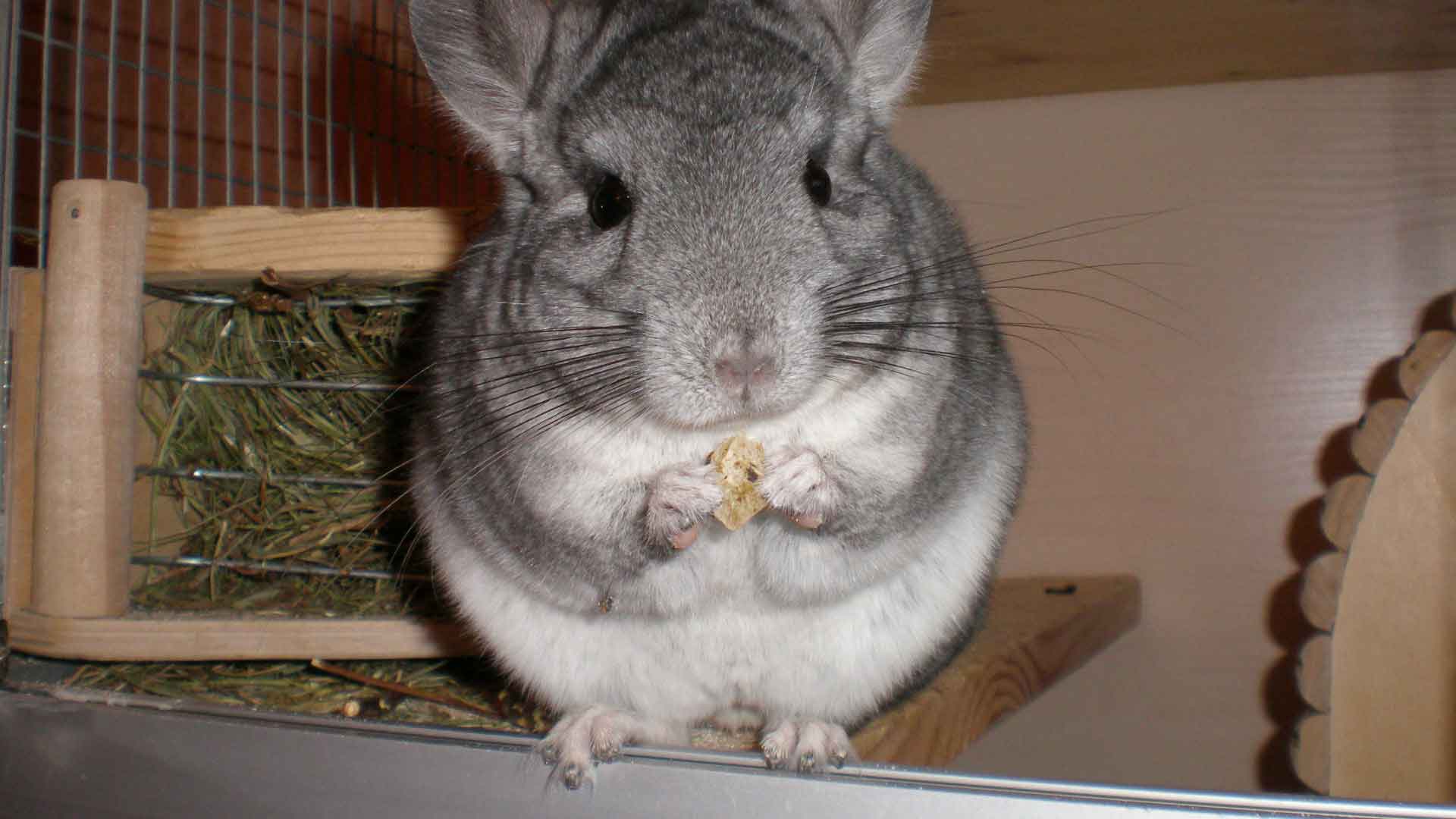умение спать вниз головой, как летучая мышь, а также в вертикальном положении, ведь у себя на родине шиншилла должна была ночевать в крошечных расщелинах.