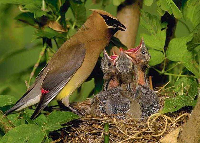 Место гнездования свиристелей – в основной зоне обитания, куда они возвращаются после долгого зимнего кочевья. Их брачный период начинается еще перед отлетом. Образовавшаяся пара везде следует вместе. С мая-июня уже пора строительства гнезд. В это время увидеть птиц – большая редкость, они становятся очень скрытными и осторожными.