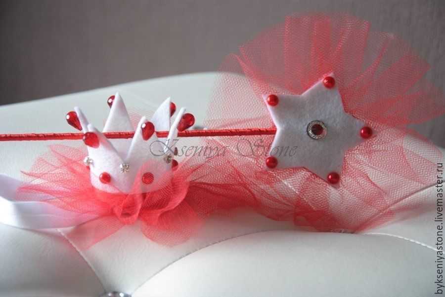 В компанию к палочке можно сделать небольшую корону из фетра или ватных дисков, с шифоном или органзой.