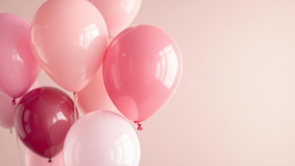 Текстура тоже имеет значение. Матовые, глянцевые, с конфетти внутри, с перьями или с блёстками — каждый тип по-разному отражает свет и по-разному ведёт себя в пространстве. Сочетание матового и глянцевого в одной палитре придаёт глубину даже простой гроздке шаров.