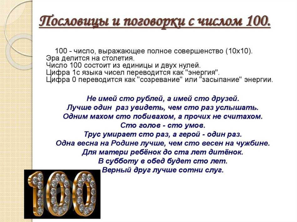 Число 100 в пословицах